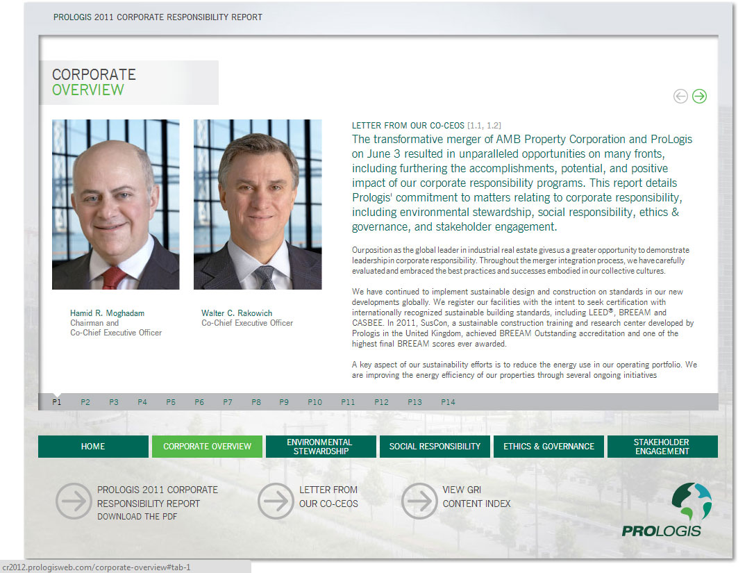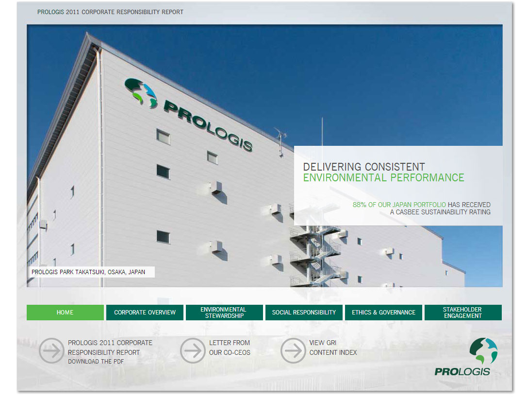 Desarrollo front-end del reporte de responsabilidad corporativo para prologis correspondiente al año 2011.
