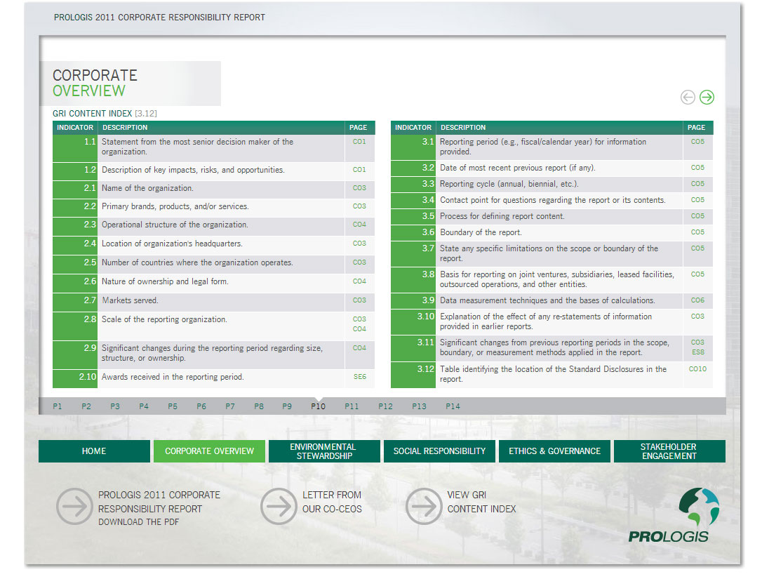 Desarrollo front-end del reporte de responsabilidad corporativo para prologis correspondiente al año 2011.